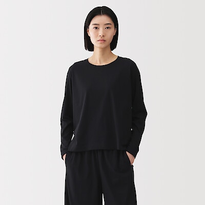 婦人 コットン天竺リラックス長袖Tシャツ 婦人S・黒