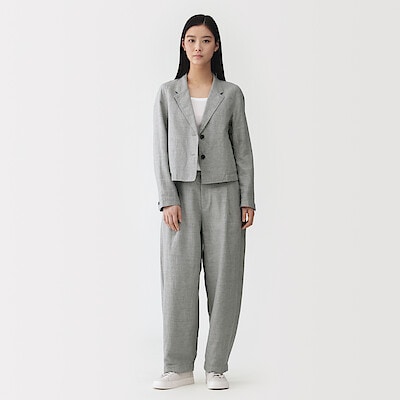 婦人 リネンコットンヘリンボーンショートジャケット 婦人L・グレー