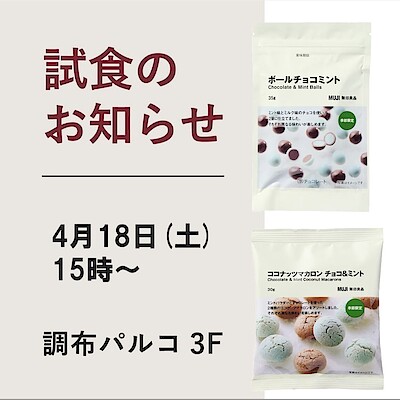 【調布パルコ】試食会のお知らせ|新商品 チョコミントのお菓子