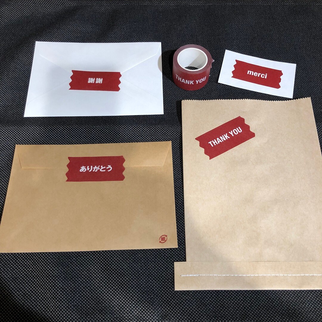 感謝のメッセージ「ありがとう」を4言語(日本語・英語、フランス語、中国語)の言葉で表したマスキングテープです。
