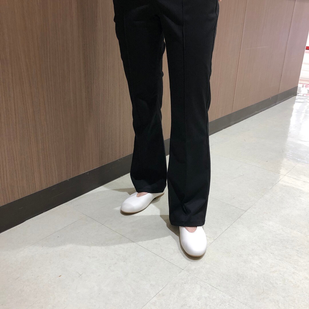 カジュアルにも綺麗めにも使えるフレアレギンスパンツを合わせました。