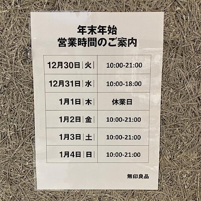 【 西友浦安】年末年始の営業時間のお知らせ