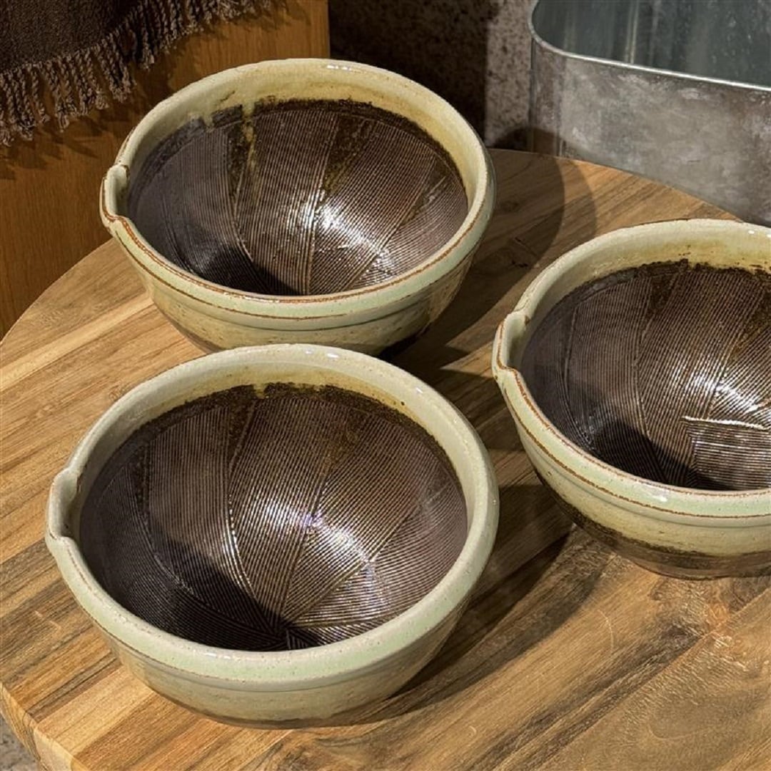 企画展「食の装い」より美濃焼 片口すり鉢 泥巻二色掛けをご紹介します。