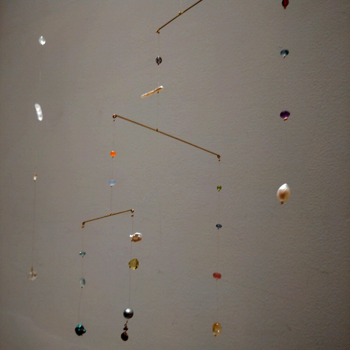 それぞれ種類の違う色とりどりの天然石がちりばめられた贅沢なモビール。