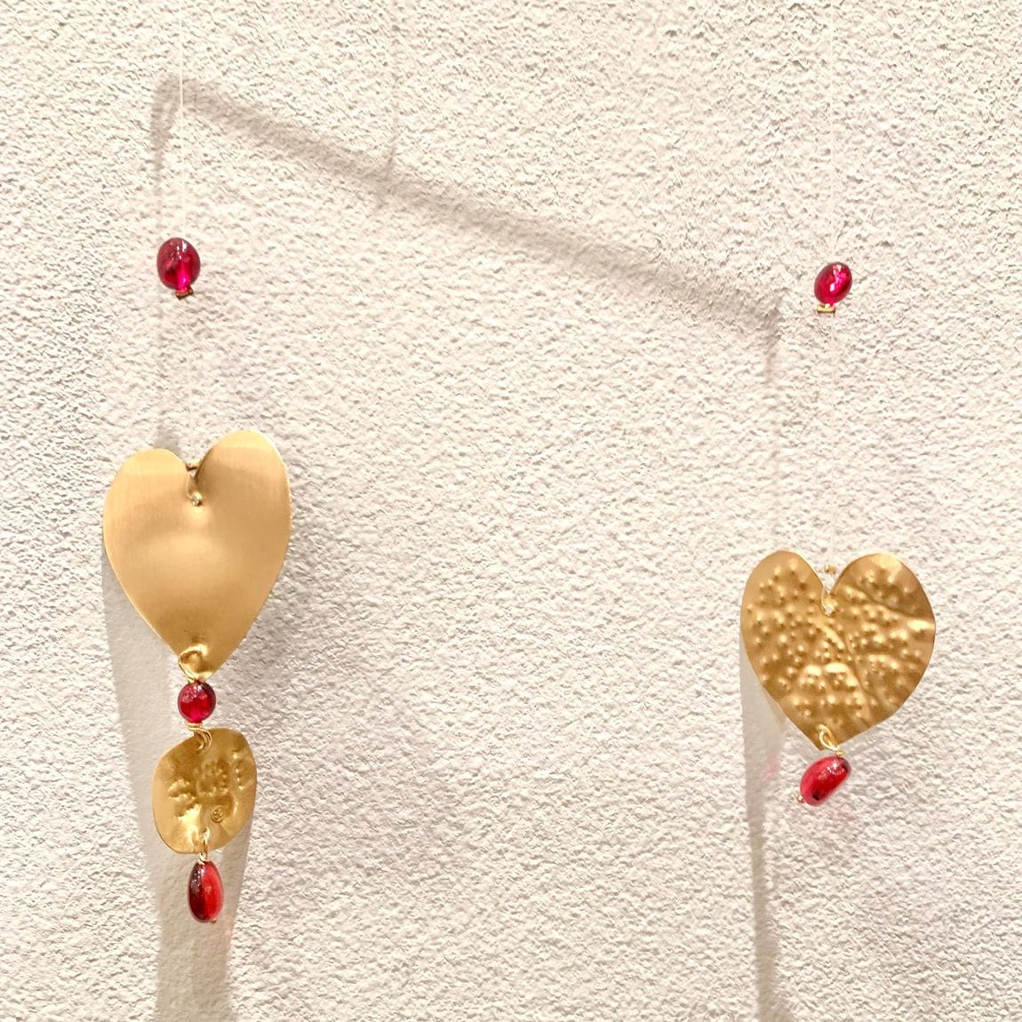 存在感のある真っ赤なレッドアンバーとハートのプレートが可愛らしいモビール。