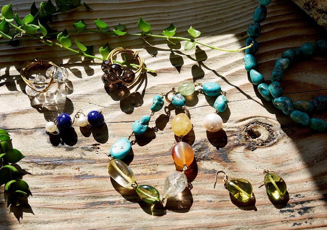 イデーショップヴァリエテ渋谷店では、そんな春の芽吹きに向けて太陽の光を纏い、輝きを増した色とりどりの天然石を繋ぎ合わせて作られたsaiジュエリーをご紹介致します。saiジュエリー はひとつひとつの石と向き合い、その本来の美しさと自然の力を引き出したジュエリーです。