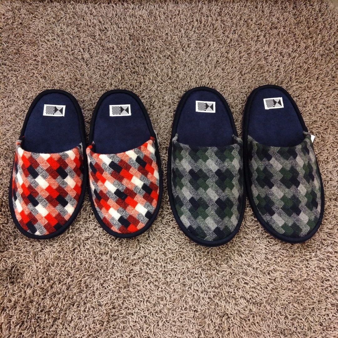 kijinokanouseiのテキスタイルを使ったクッション性がよく履き心地も抜群のスリッパもブランケットと一緒に冬の足元を温めてくれます。