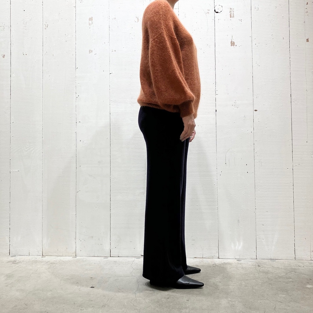 空気をたっぷり含んだモヘヤ混の糸で編んでいるため、ふんわりと軽やかなニットです。バルーンのように少し丸みをおびた袖のシルエットで優しい雰囲気とこなれ感を演出。ホールガーメント編みで継ぎ目や縫い代がないため、着心地の良さにも優れています。