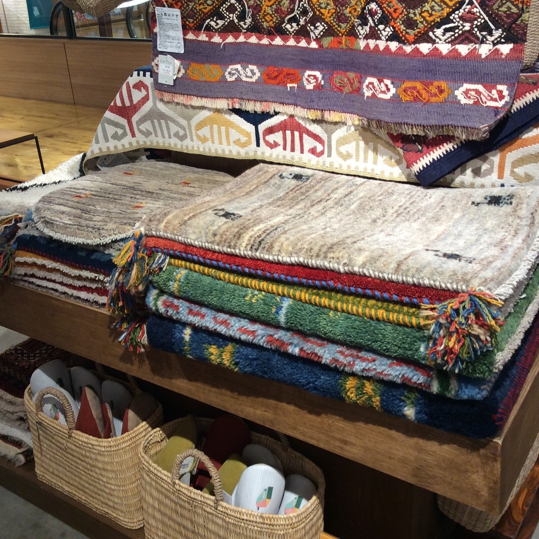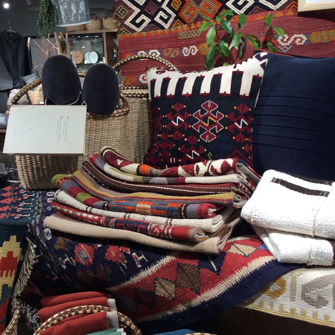 今までも定番で人気のギャベや、新たに入れたキリムのクッションカバーなど、豊富なラインナップが揃っています。