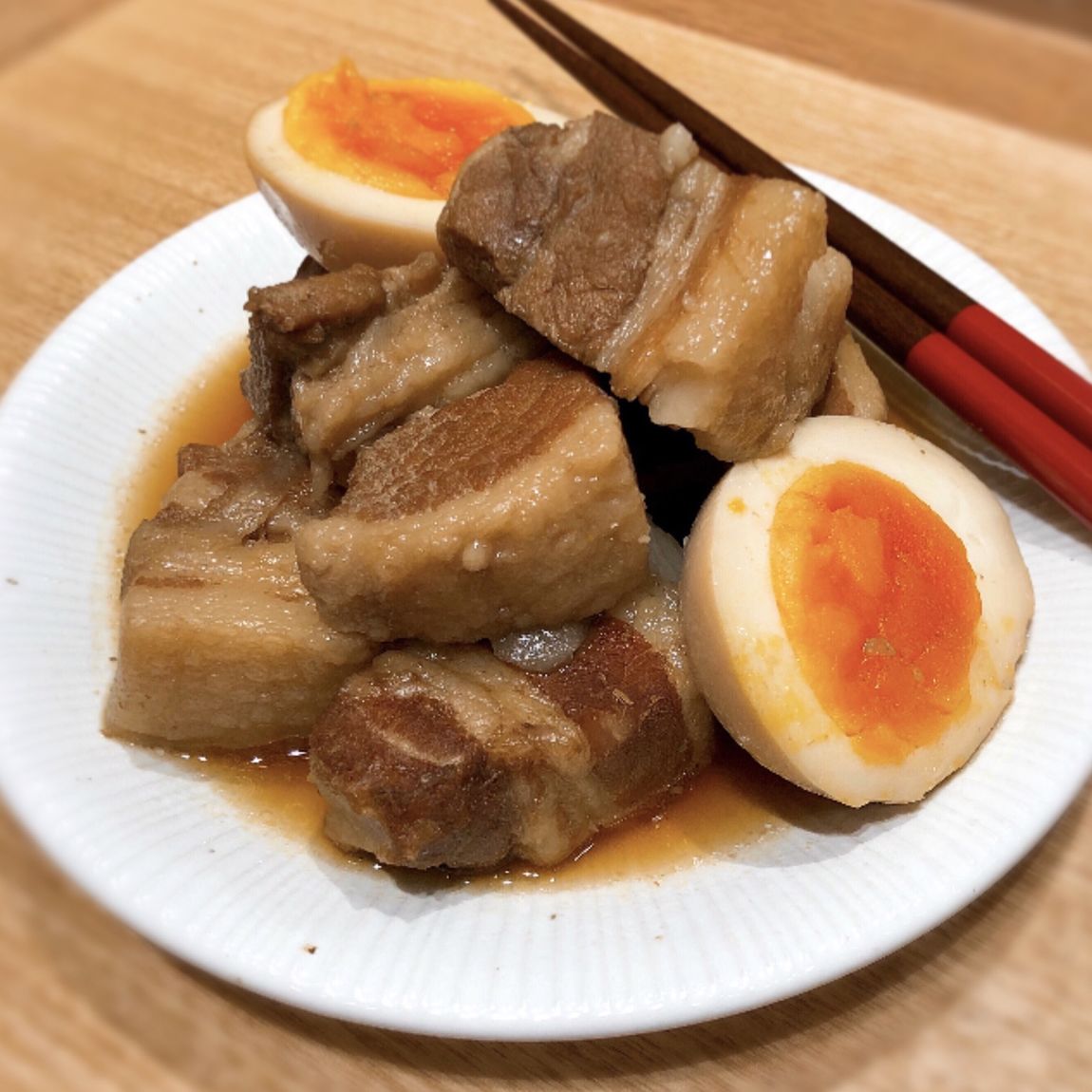 沖縄の伝統料理でであるラフテーをお手本に、豚のバラ肉を生姜をきかせた煮付け出汁でやわらかくじっくりと煮込みました。