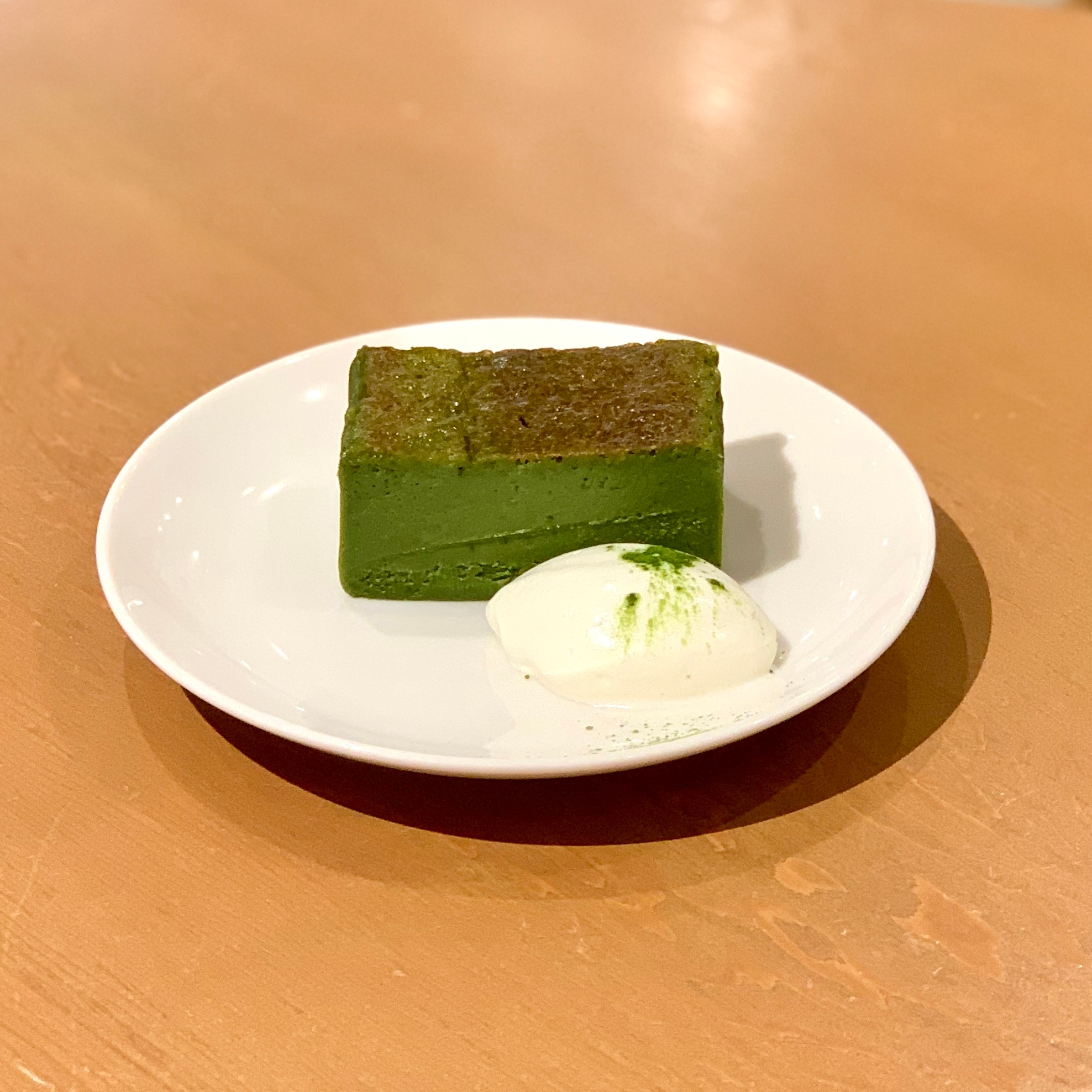 三重県四日市市でかぶせ茶の製造・販売をしている マルシゲ清水製茶 さんの 粉末かぶせ茶葉を使用し、ホワイトチョコと生クリームを加えて、濃厚で贅沢なテリーヌに仕上げました。