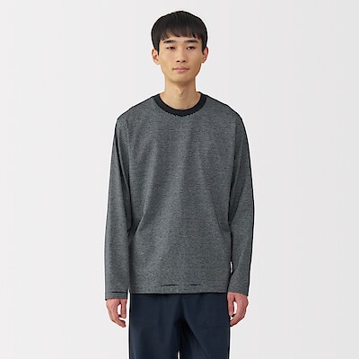紳士 天竺編みクルーネック長袖Tシャツ(ボーダー) 紳士L・黒ボーダー