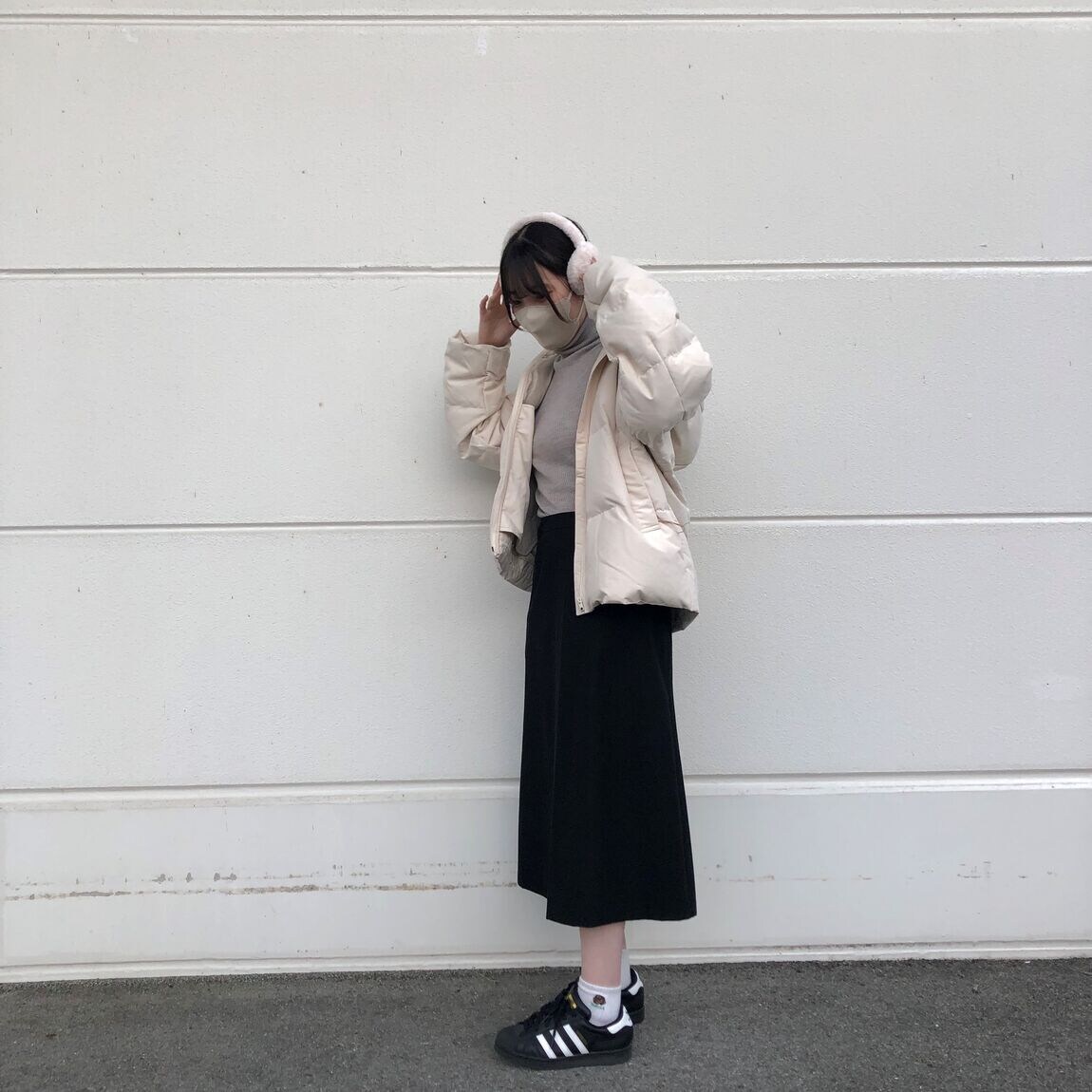 タートルネックとダウンジャケットで暖かくしました。これからの寒い時期にぴったりです。