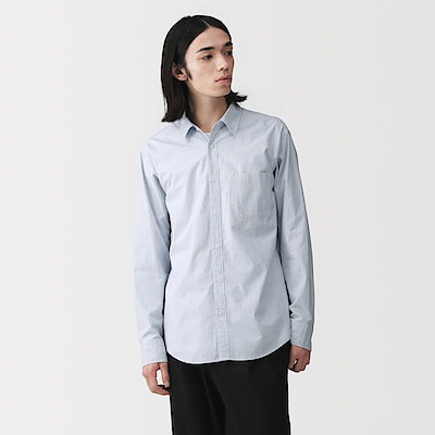 定番のシャツとして、幅広い方々に着て頂ける、体に馴染みの良いシルエット。体に沿うように設計し、腕を動かしても服が突っ張りづらいです。