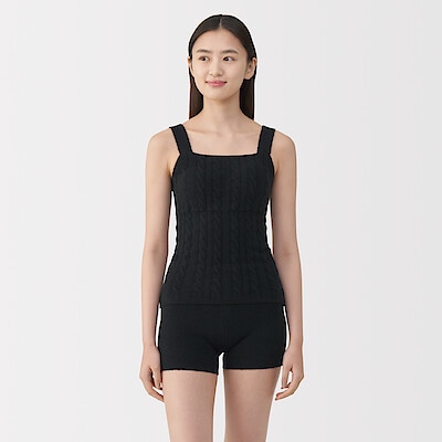 商品名:婦人 コットン混もこもこニットブラタンクトップ ケーブル柄