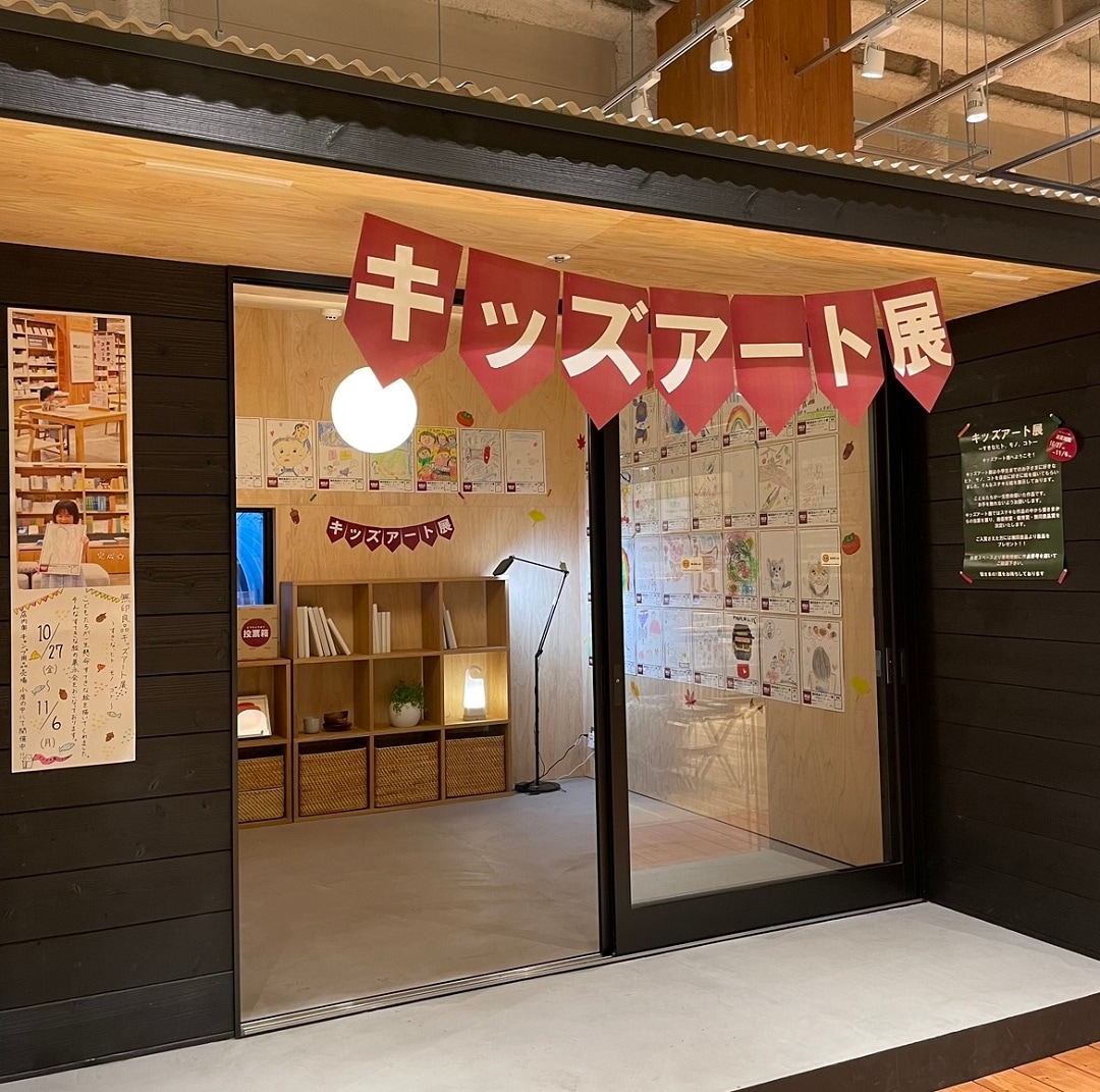 キッズアート展とは小学生までのお子さまを対象とし、自分のすきな絵を自由に描いてもらいました。そんな素敵な作品を店内小屋の中で展示会を行いました。