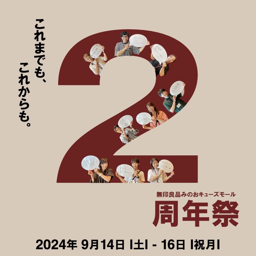9月14日(土)、15日(日)、16日(月)の3日間、「無印良品みのおキューズモール2周年祭~これまでも、これからも。~」を開催します。