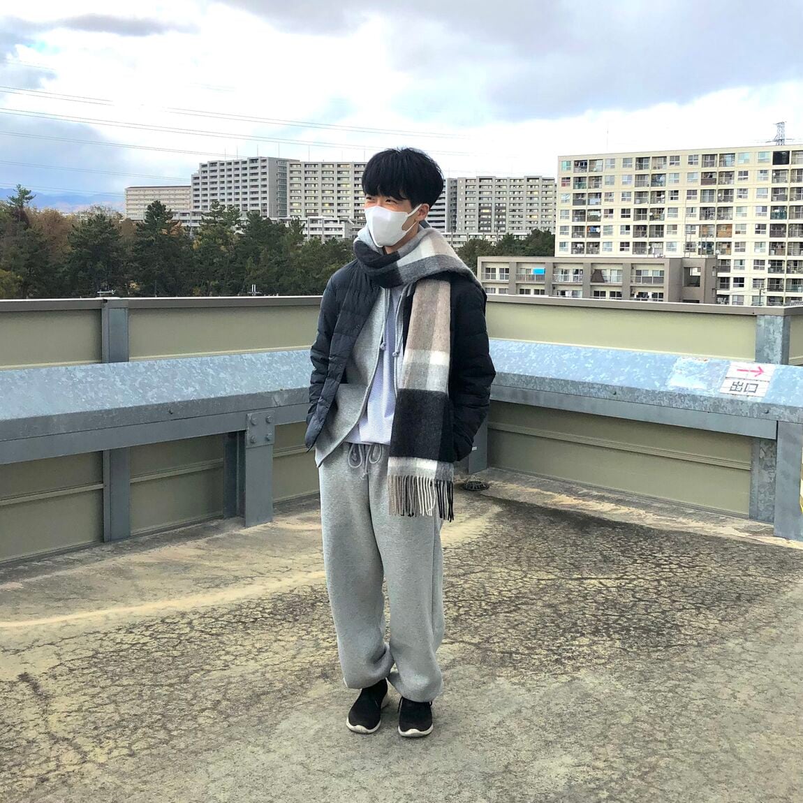 ふっくらウール 大判ストール(チェック) 60×200cm・黒チェック