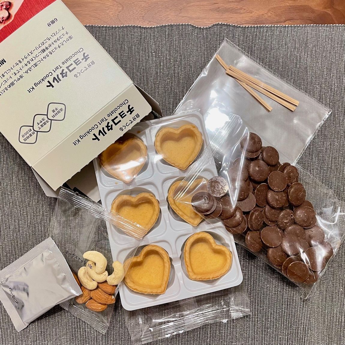 溶かしたチョコをタルトに流し込み、冷やし固めるだけでチョコタルトが手軽につくれるキットです。