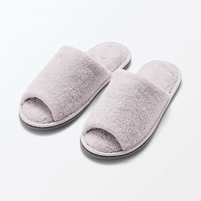 洗える綿パイルスリッパ・前あき L/25~27.5cm用・グレー