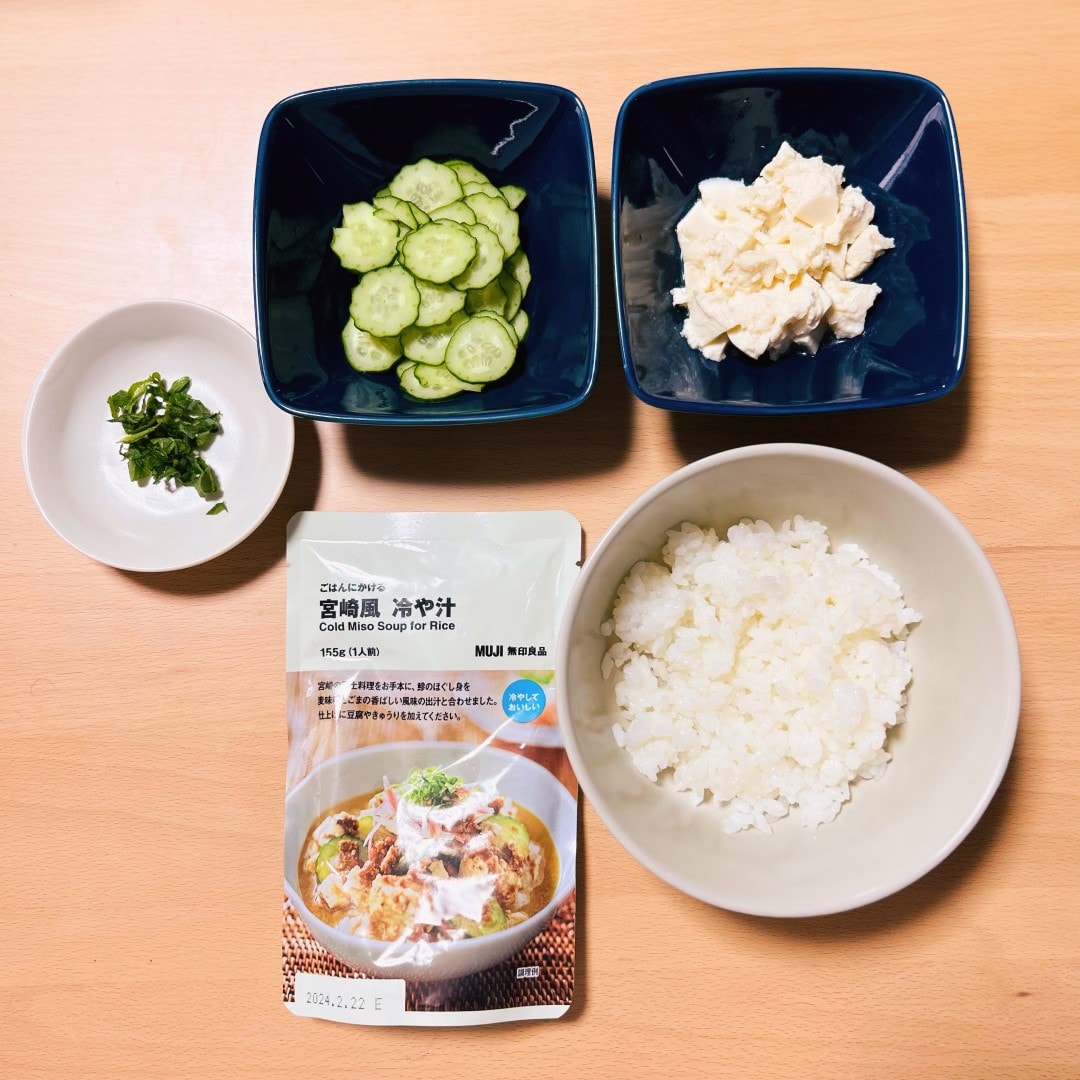 無印良品では宮崎県の冷や汁をお手本に、鯵のほぐし身を麦味噌とごまの香ばしい出汁と合わせました。