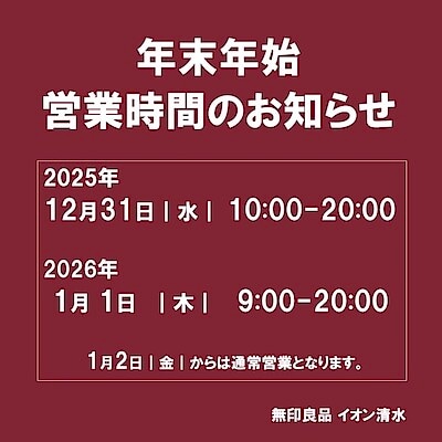 【イオン清水】年末年始の営業時間のお知らせ
