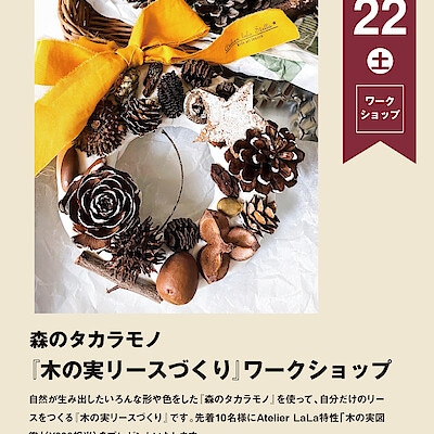 【阪急西宮ガーデンズ】森のタカラモノ『木の実リースづくり』ワークショップ