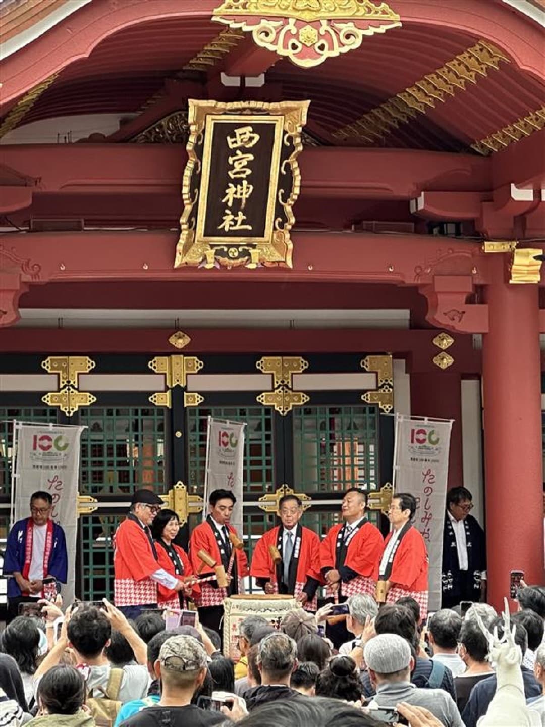 メイン会場の西宮神社では、「祝市制100周年を祝いみんなで乾杯」が行われました。