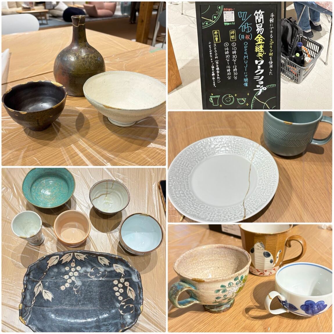 割れたり、欠けたり、ヒビが入ってしてしまった大切な器を捨てるのではなく、簡易金継ぎで修復していただくワークショップ。