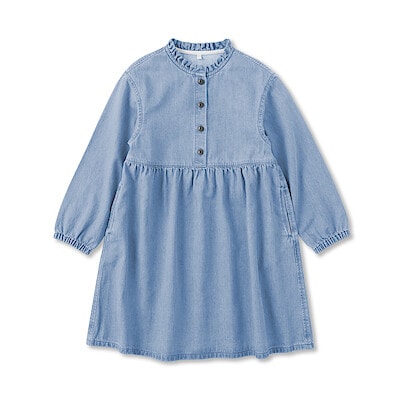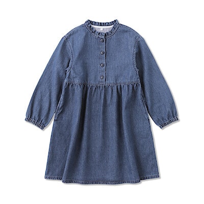 本日は、春先にぴったりなキッズの「ライトオンデニム スタンドカラー長袖ワンピース」をご紹介します。