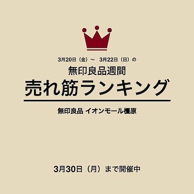 【イオンモール橿原】無印良品週間 売れ筋ランキング 2026/03/25