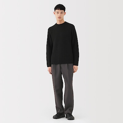 シンプルだからこそ着こなしも自由に楽しんでいただけるセーターに、今回は婦人のパンツを合わせたコーディネートです。