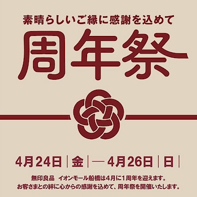 【イオンモール幕張新都心】無印良品イオンモール船橋「周年祭」開催のお知らせ