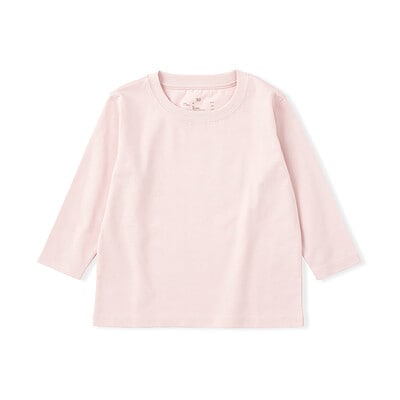ベビー あたまするっと 天竺編みクルーネック長袖Tシャツ 無地 ベビー100・ペールピンク