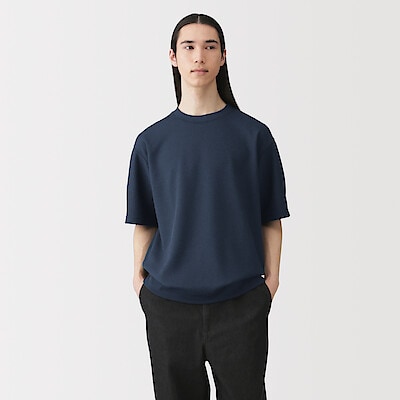 紳士 UVカット乾きやすいワッフルクルーネック半袖Tシャツ 紳士M・ダークネイビー