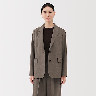 婦人 起毛テーラードジャケット 婦人S・ブラウン柄