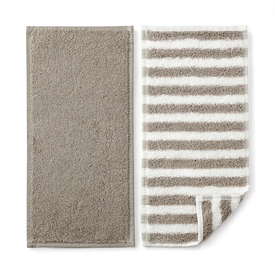 綿 やわらか タオルハンカチ(縞) 25×25cm・チャコールグレーストライプ