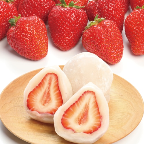 いちご・梨・みかんのフルーツと、練乳クリームを贅沢にあわせたスペシャルな大福です。贈りものにも喜ばれる、季節限定商品です。