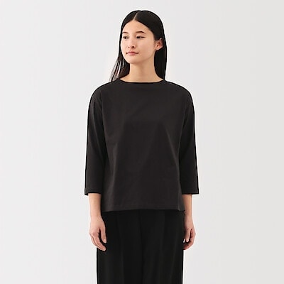 商品名:婦人 天竺編みボートネック七分袖Tシャツ
