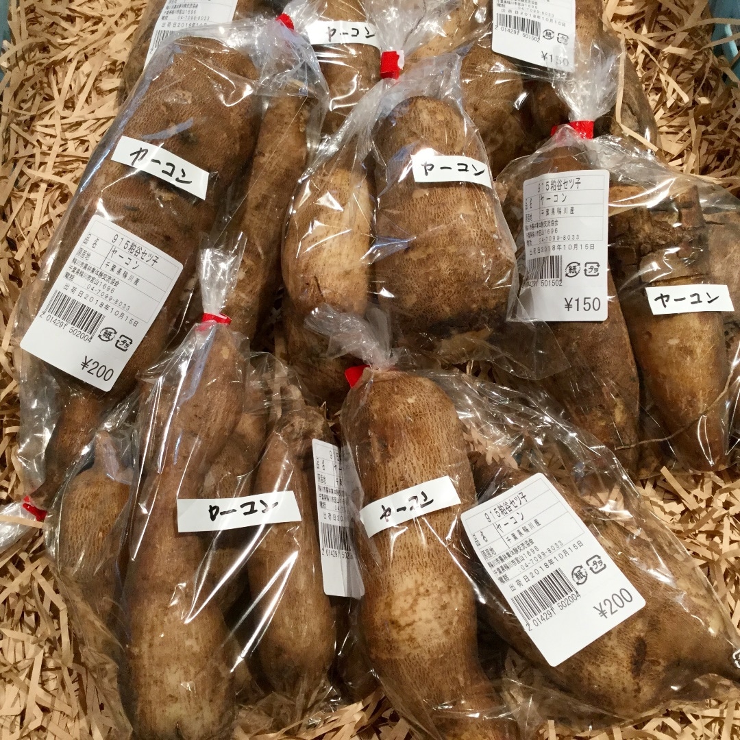 ヤーコンという名前のこの根菜は、見た目はサツマイモによく似ていますが、じつはアンデス高原原産のキク科の植物で、根っこの部分が食用です。