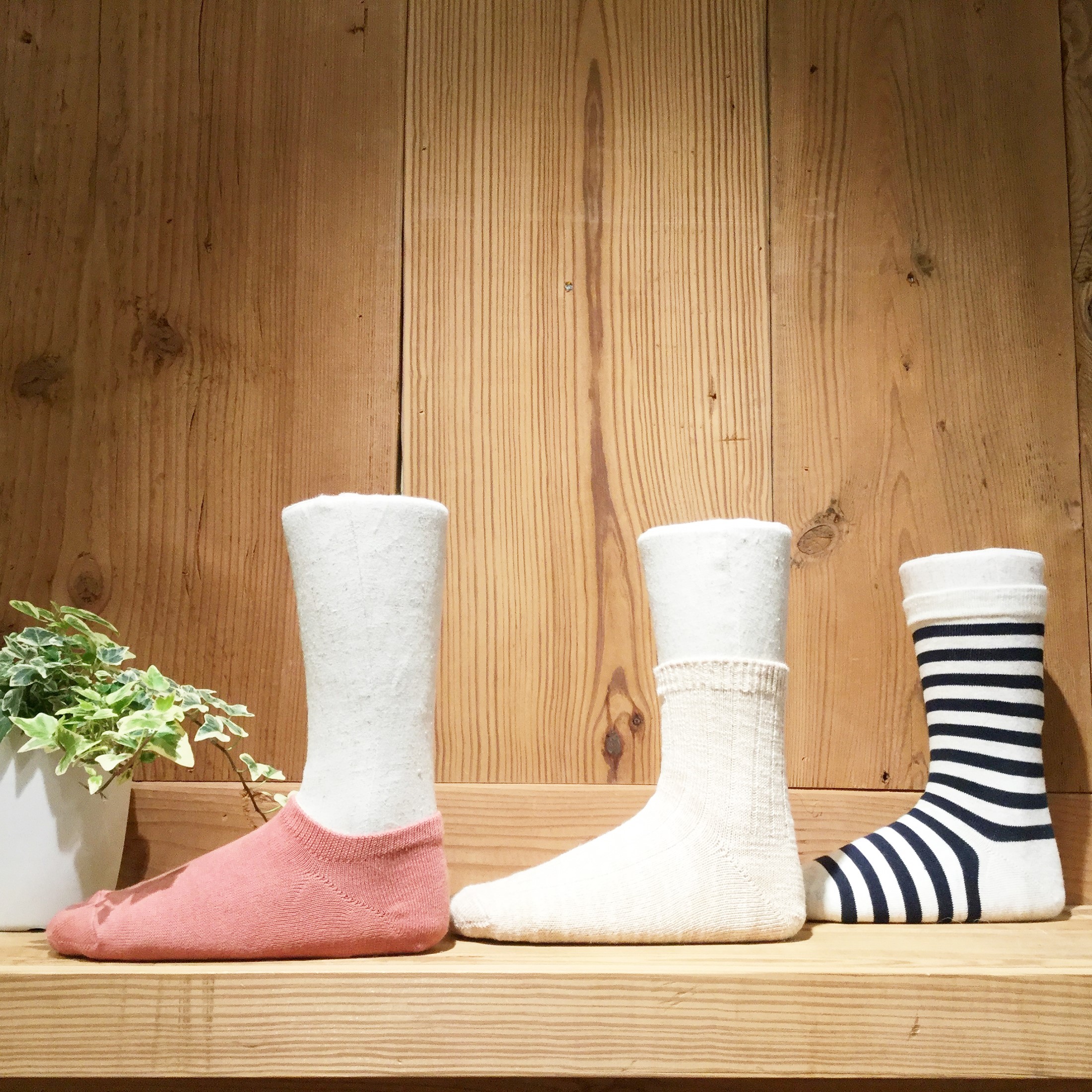 これからの季節、足元を彩るワンポイントに無印良品の足なり直角靴下はいかがでしょうか。