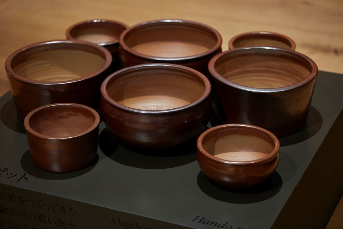『はんどう』という水がめの製造に使われていた、耐水性の高い陶土を活用した植木鉢。