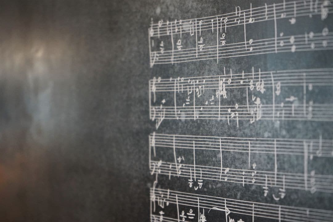 Libraryには、平井さんによる手書きの楽譜が浮かび上がります。