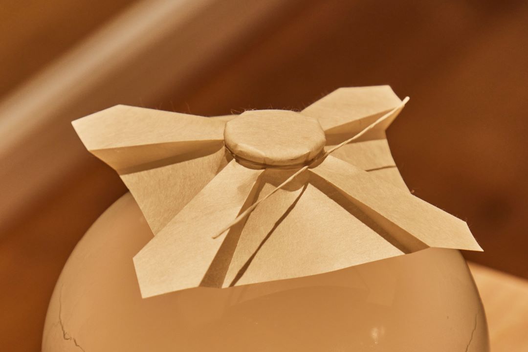 紙で封印をするのは中に不浄なものを入れないため。器の上に紙の折り目で×を表す。