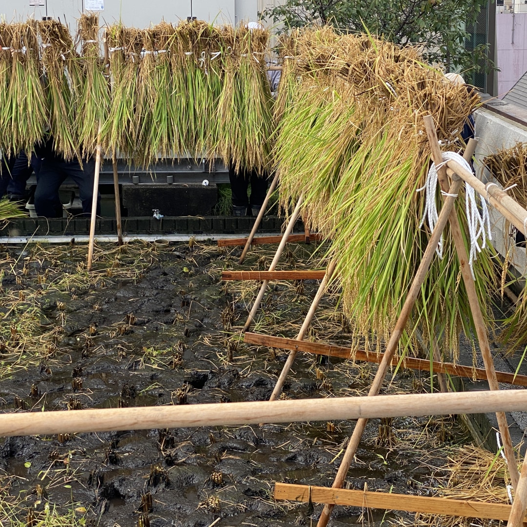 当日は天気の心配もありましたが、稲刈り直前に雨が上がり、参加者の皆さんで協力し合って無事に収穫できました。