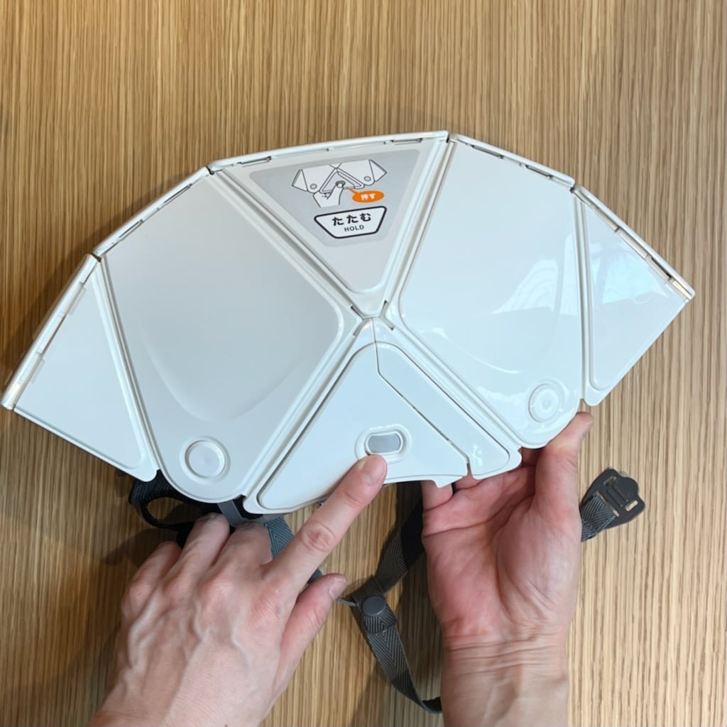 こちらのヘルメットの良さはなんといっても、「折りたたみ」ができるというところです。