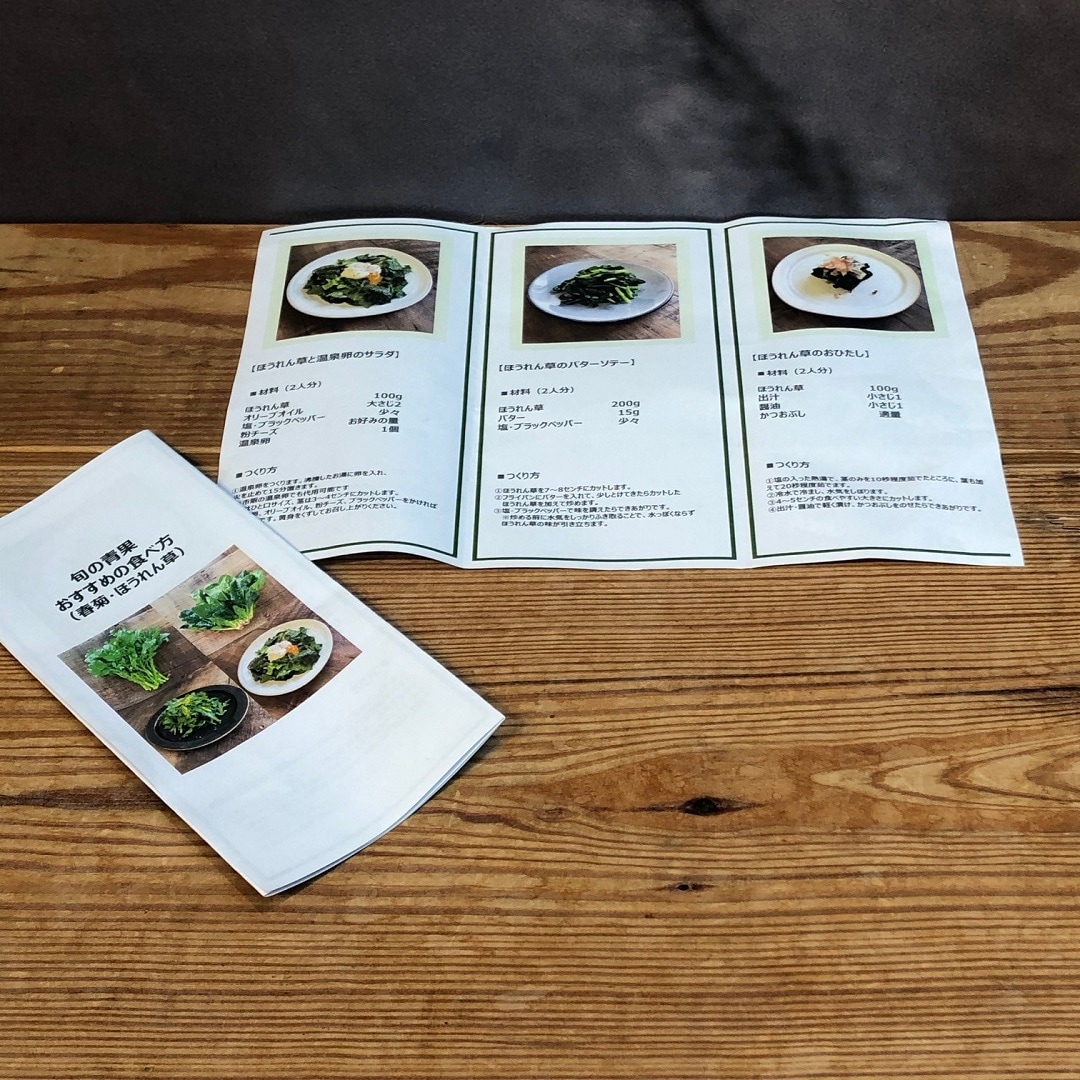 旬の野菜を使ったおすすめのレシピを掲載したリーフレットもご用意しました。