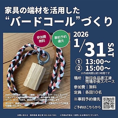 【直江津】1月31日(土)家具の端材を活用した「バードコールづくり」ワークショップ開催のお知らせ