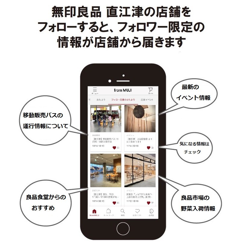 MUJIpassportではフォローした店舗から地域の情報やおしらせが配信されています。