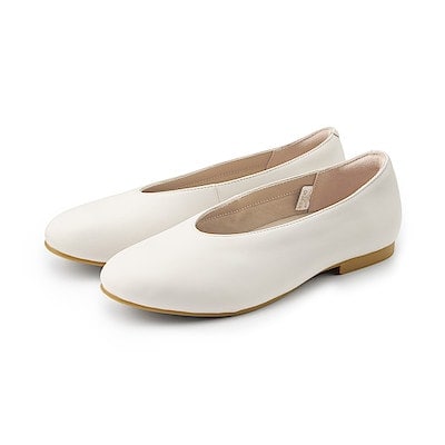 婦人 疲れにくい レザー深履きシューズ 24.0cm・オフ白